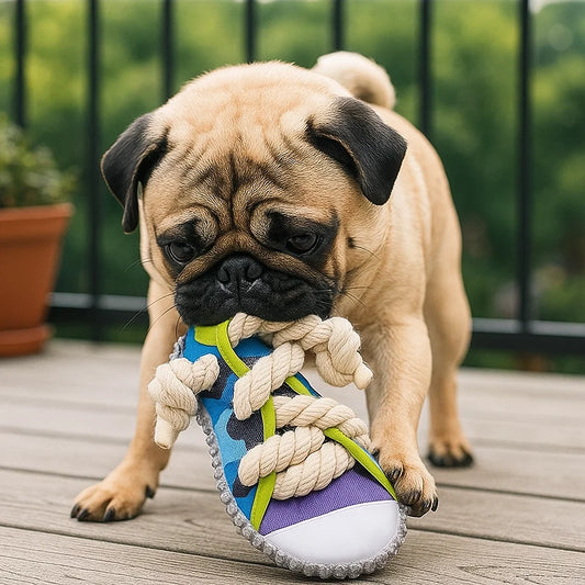 Gwizdające kapcie ze sznurem – zabawa i zęby