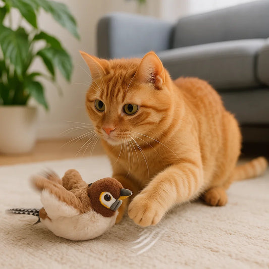 Kocia Zabawka Pluszowy Ptak ⎜ Interaktywna Zabawa i Polowanie