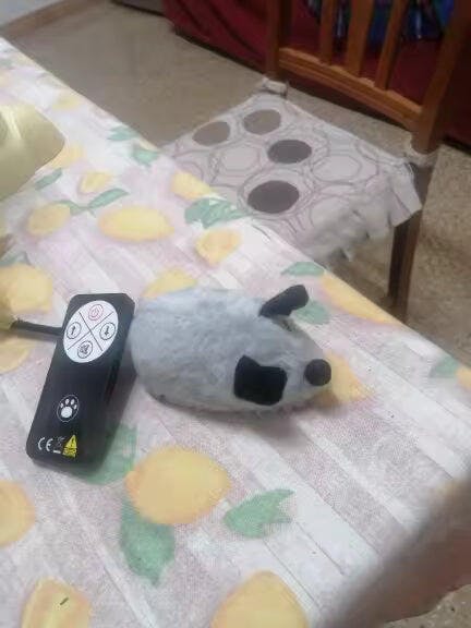 Mój kot od razu zainteresował się tą inteligentną myszą i goni ją po całym mieszkaniu. Widać, że zabawka pobudza jego instynkt polowania.