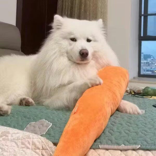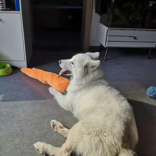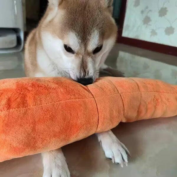 Mój pies zasypia, trzymając tę marchewkę pod łapą. Widać, że działa na niego uspokajająco.