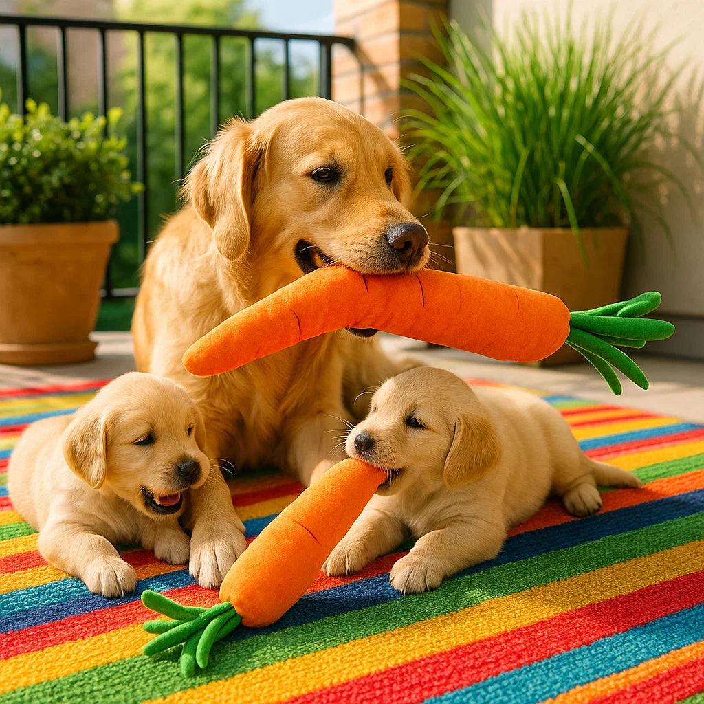 - 🐾 Idealna do treningu, aportowania i zabawy samodzielnej – Kształt marchewki ułatwia chwytanie, rzucanie i przenoszenie – idealny do różnych aktywności.