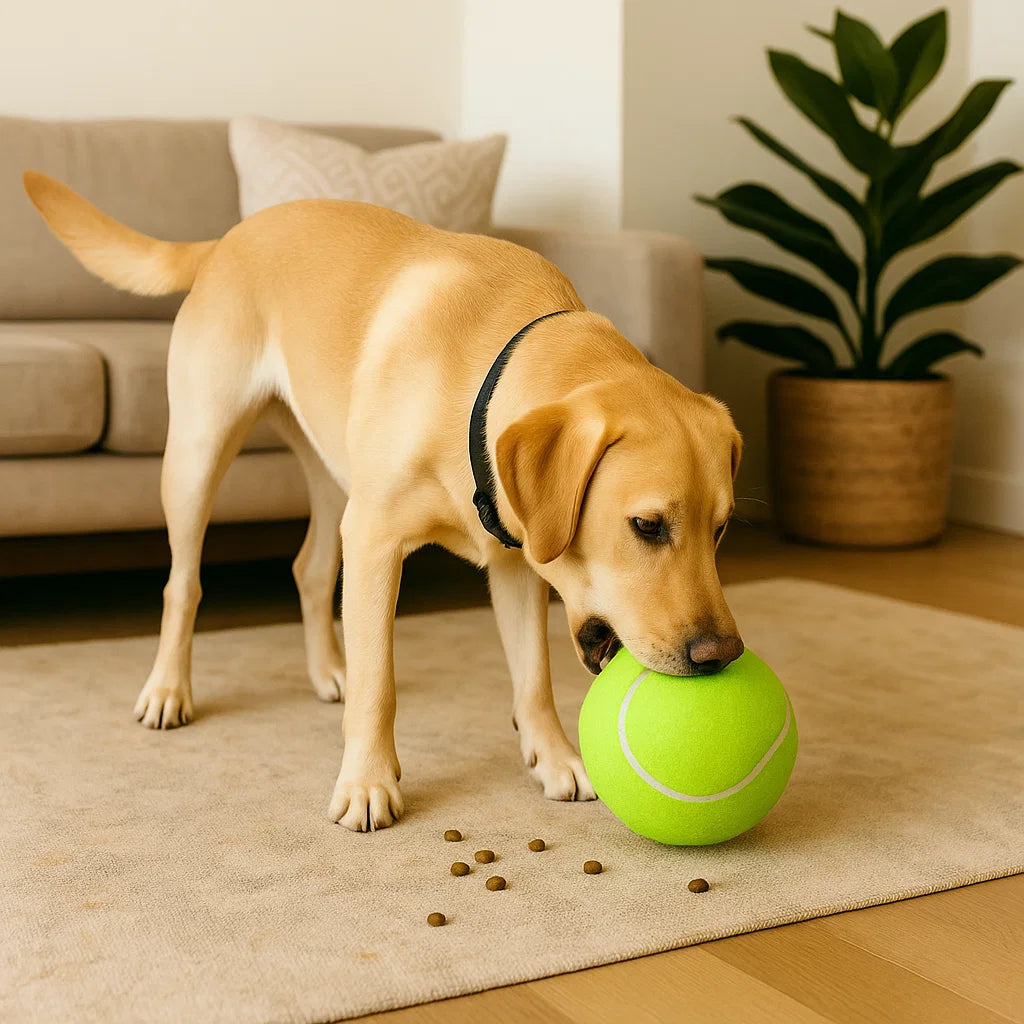 Gigantyczna piłka tenisowa motywuje psy do biegania, skakania i łapania – bez chwili nudy. Regularna zabawa wspiera kondycję fizyczną i zapewnia zdrowy ruch każdego dnia.