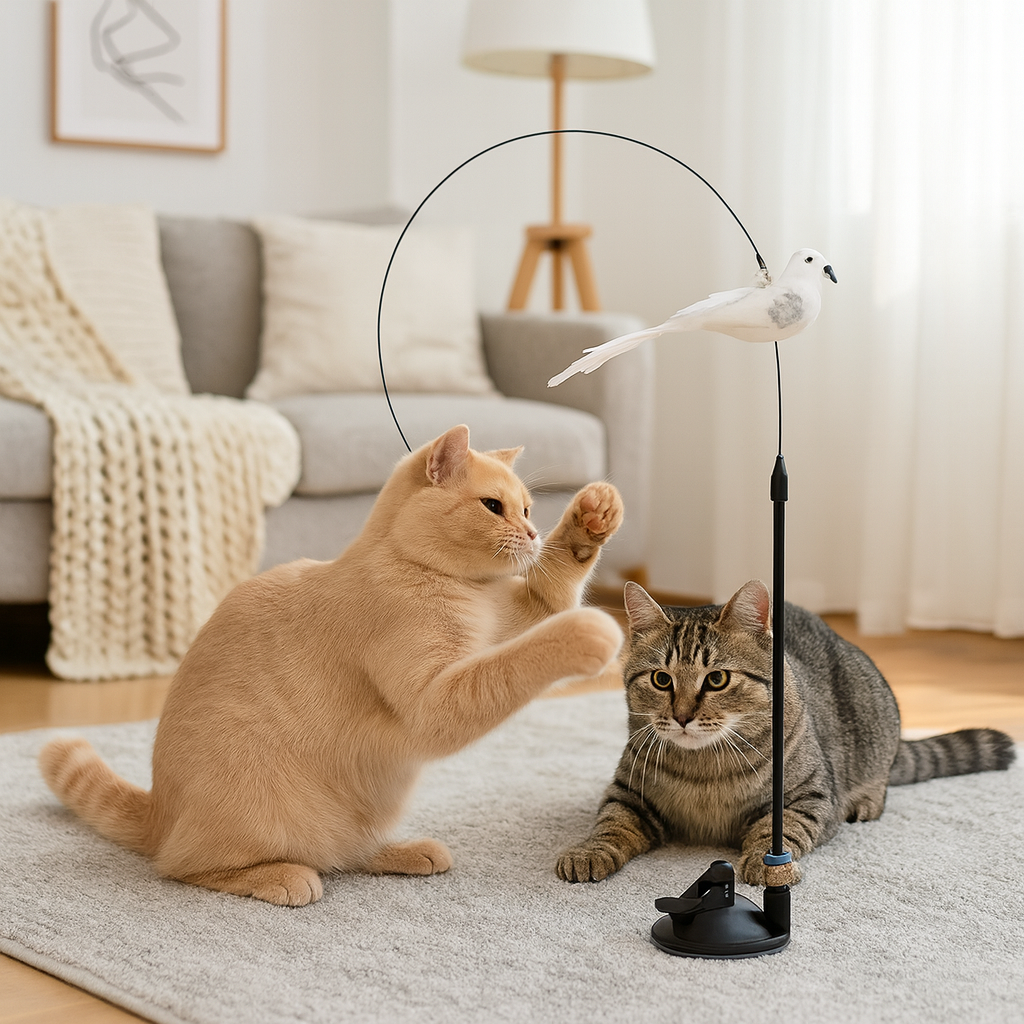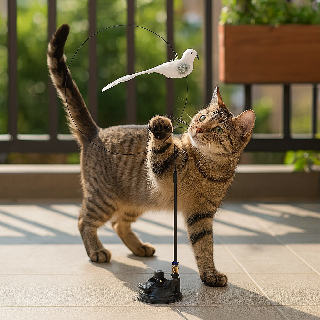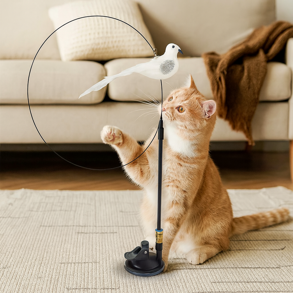 „Zabawkowy ptak – interaktywna zabawka dla kota” zapewnia codzienną dawkę ruchu, polowania i radości. Realistycznie poruszający się ptak pobudza naturalne instynkty, a elastyczny pręcik i stabilna podstawa pozwalają bawić się bezpiecznie na każdej gładkiej powierzchni. Idealna, gdy chcesz zająć kota, odciążyć go od nudy i zapewnić mu zdrową aktywność w domu.