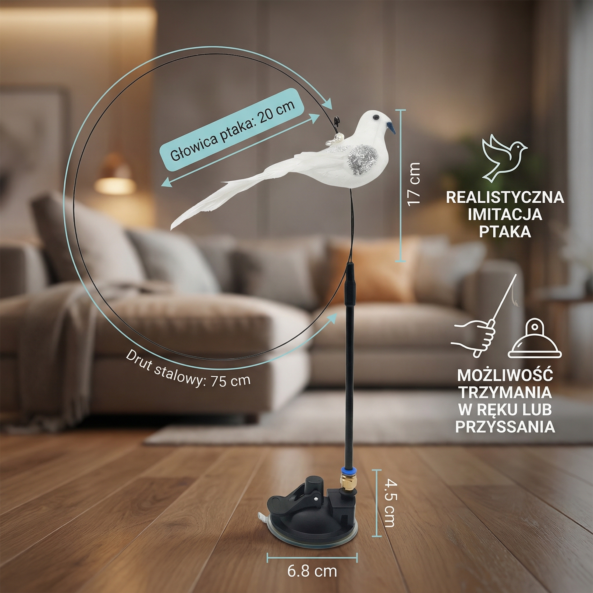 - 🪶 Realistyczny „ptak”: dynamiczne ruchy zachęcają do skakania, gonienia i łapania.